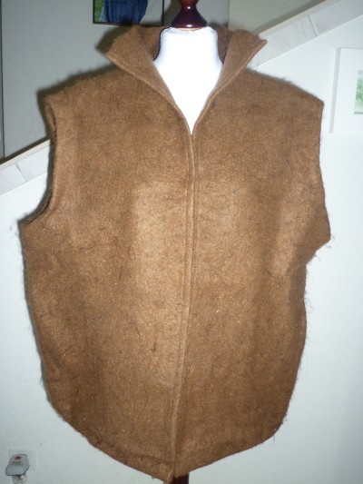 Als zweites, sehr grosse Projekt entstand ein Gilet für meinen Mann. Dieses wurde als Hohlform angefertigt. Korrekt an die Körpergrösse angpasst und die Masse genauestens bemessen, die Faser musste berechnet und gewogen werden. Dazu war Fachwissen ein absolutes Muss. Nach vielen Stunden Arbeit von Auslegen, Rollen, Kneten und Ziehen dachte ich mir: nie mehr!