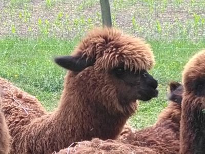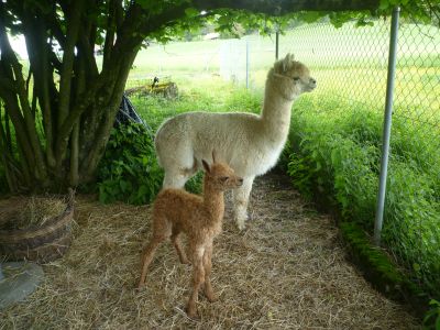 Carinosa, geboren am 25.07.2015 von Promesa. Nach einer langen Hitzeperiode kam am ersten kühleren Tag Carinosa mit 9.600kg zur Welt. Promesa behielt sie geschützt und wohlbehütet über ein Jahr in ihrem Bauch. Obwohl Carinosa ein übergrosses Cria war, ist sie heute wie ihre Mutter feingliederig und eher klein.