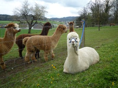 Geboren am 30.04.2007. Nachdem unsere Freunde nach Neuseeland ausgewandert sind, hat auch der Zuchthengst, Pedro, seinen Besitzer gewechselt. Von Adrian Brändle (Peru Alpakazucht, Bichwil) kauften wir Loreto als 7 jährigen, erfahrenen und ruhigen Zuchthengst. Loreto ist rücksichtsvoll und akzeptiert die Abwehr der Stuten, nachdem er sie decken konnte. In der Hengstherde behält er den Überblick. Auch mit den Junghengsten geht er sorgsam um. Zur Zeit haben wir eine Hengstherde von 11 Tieren.